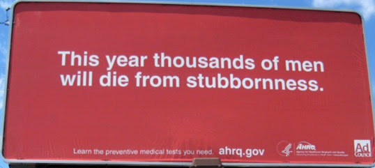 I saw this roadsign twice in one weekend. So, I thought I would take the hint. At 60 MPH, I couldn’t read the fine print. I wasn’t quite sure who the ad was for. Nevertheless, I got the message. I didn’t want to die of stubbornness. So I had to think, “What was I being stubborn about?” (Is this a multiple choice question?)